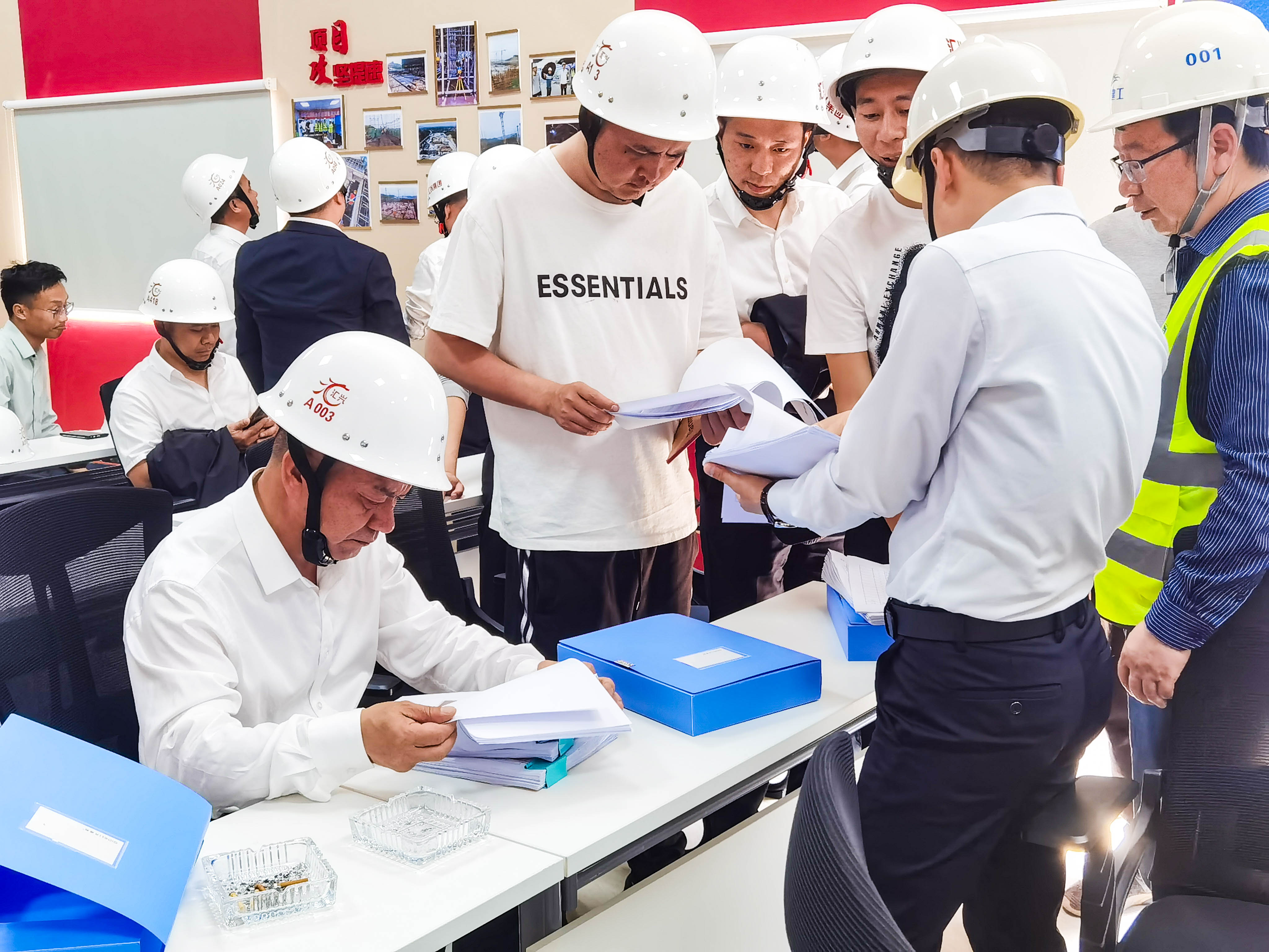 在項目現(xiàn)場,觀摩團(tuán)聽取了相關(guān)負(fù)責(zé)人對施工建設(shè)、外架施工工藝、標(biāo)準(zhǔn)化工地建設(shè)等情況的匯報,并對先進(jìn)施工工藝、安全資料管理、項目黨建活動開展情況進(jìn)行了交流學(xué)習(xí)。